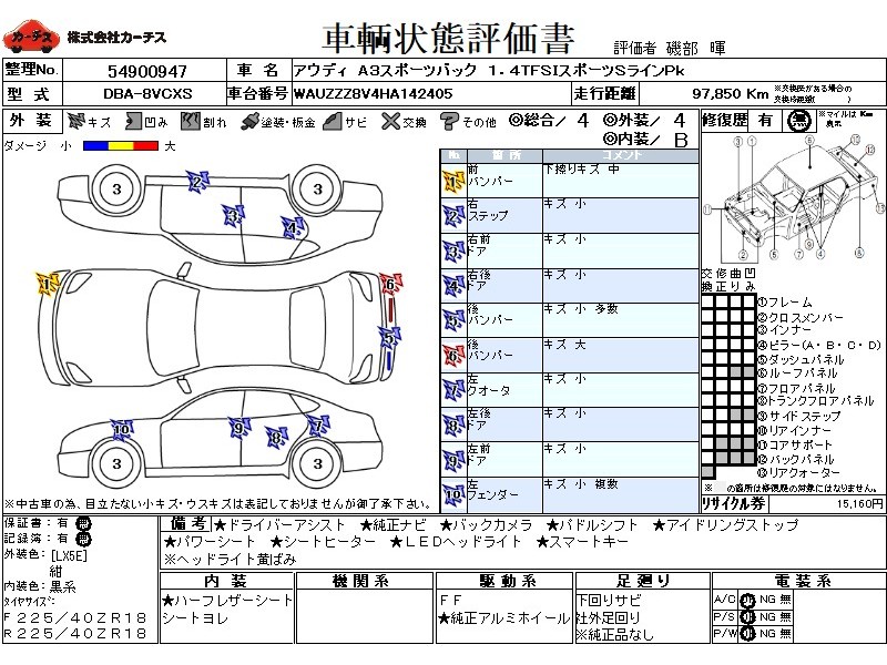 乗車定員(5人) / エアコン(オート) / パワーステアリング / パワーウィンドウ / エアバッグ / 助手席エアバッグ / サイドエアバッグ / ABS / トラクションコントロール / クルーズコントロール / カーナビゲーション(ポップアップ,HDD,2DIN) / バックカメラ / アルミホイール(18インチ) / ハーフレザーシート / スマートキー / マフラー(社外) /