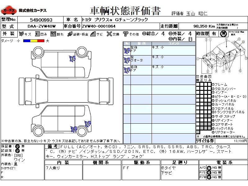 フル装備 / CD(社外) / 乗車定員(7人) / エアバッグ / 助手席エアバッグ / サイドエアバッグ / ABS / トラクションコントロール / クルーズコントロール / カーナビゲーション(社外)(インダッシュ,SSD,2DIN) / 地デジTV(社外) / ETC / アルミホイール(社外)(16インチ) / ハーフレザーシート / スマートキー / ウインカーミラー / ハイマウントストップランプ / フォグランプ /