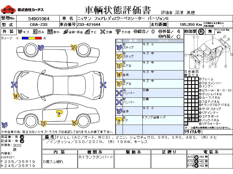フル装備 / CD(社外) / 乗車定員(2人) / 集中ドアロック / エアバッグ / 助手席エアバッグ / ABS / カーナビゲーション(社外)(インダッシュ,SSD,2DIN) / 地デジTV(社外) / ETC(社外) / アルミホイール(社外)(19インチ) / キーレスエントリー / フロントスポイラー(社外) / サイドスポイラー(社外) / リアスポイラー(社外) / 足回り /