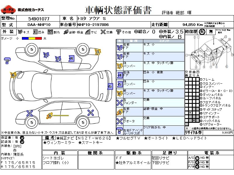 乗車定員(5人) / エアコン(オート) / パワーステアリング / パワーウィンドウ / 集中ドアロック / CD / エアバッグ / 助手席エアバッグ / ABS / トラクションコントロール / カーナビゲーション(インダッシュ,SSD,2DIN) / 地デジTV / ETC(社外) / アルミホイール(社外)(15インチ) / スマートキー / ウインカーミラー / ハイマウントストップランプ /