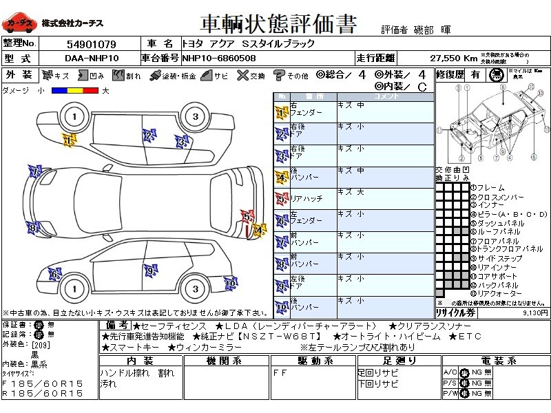 乗車定員(5人) / エアコン(オート) / パワーステアリング / パワーウィンドウ / CD / エアバッグ / 助手席エアバッグ / ABS / トラクションコントロール / カーナビゲーション(インダッシュ,SSD,2DIN) / 地デジTV / バックカメラ / ETC / アルミホイール(社外)(15インチ) / スマートキー / ウインカーミラー / ハイマウントストップランプ /