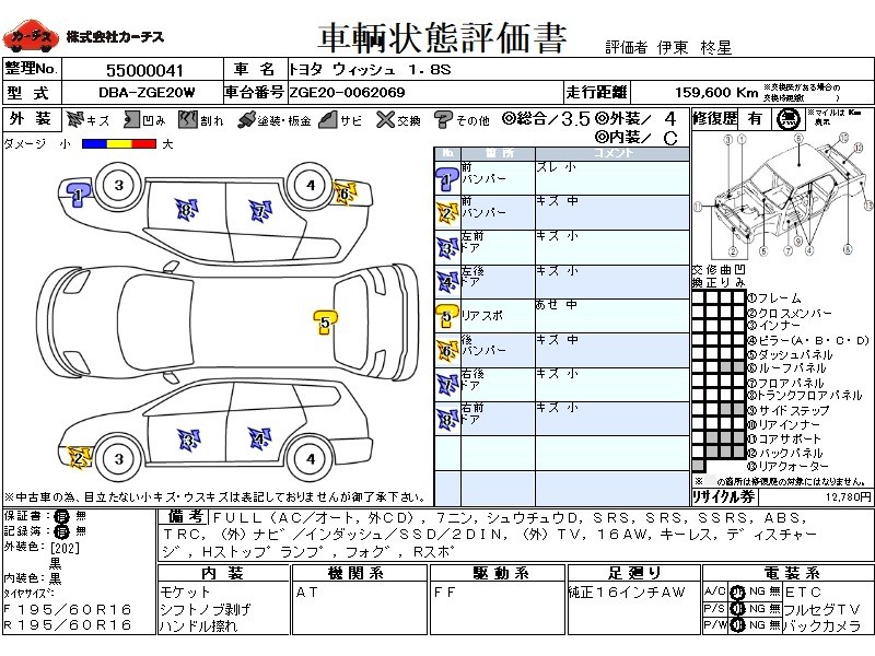 フル装備 / CD(社外) / 乗車定員(7人) / 集中ドアロック / エアバッグ / 助手席エアバッグ / サイドエアバッグ / ABS / トラクションコントロール / カーナビゲーション(社外)(インダッシュ,SSD,2DIN) / テレビ(社外) / 地デジTV(社外) / ETC(社外) / アルミホイール(16インチ) / キーレスエントリー / ディスチャージ / ハイマウントストップランプ / フォグランプ / リアスポイラー /