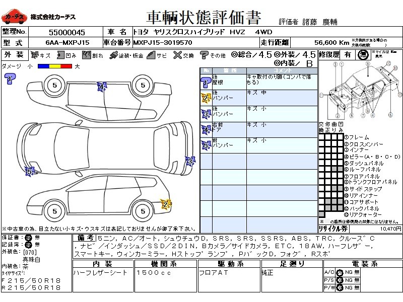 乗車定員(5人) / エアコン(オート) / パワーステアリング / パワーウィンドウ / 集中ドアロック / エアバッグ / 助手席エアバッグ / サイドエアバッグ / ABS / トラクションコントロール / クルーズコントロール / カーナビゲーション(インダッシュ,SSD,2DIN) / バックカメラ(サイドカメラ) / ETC / アルミホイール(18インチ) / ハーフレザーシート / スマートキー / ウインカーミラー / ハイマウントストップランプ / パワーバックドア / フォグランプ / リアスポイラー /