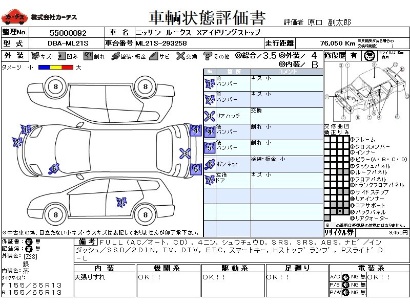 フル装備 / CD / 乗車定員(4人) / 集中ドアロック / エアバッグ / 助手席エアバッグ / ABS / カーナビゲーション(インダッシュ,SSD,2DIN) / テレビ(アナログ) / 地デジTV / ETC / スマートキー / ハイマウントストップランプ / パワースライドドア /
