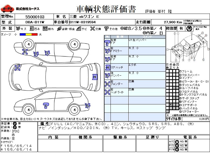 フル装備 / CD(社外) / 乗車定員(4人) / 集中ドアロック / エアバッグ / 助手席エアバッグ / ABS / カーナビゲーション(社外)(インダッシュ,HDD,2DIN) / テレビ(社外) / キーレスエントリー / ハイマウントストップランプ /