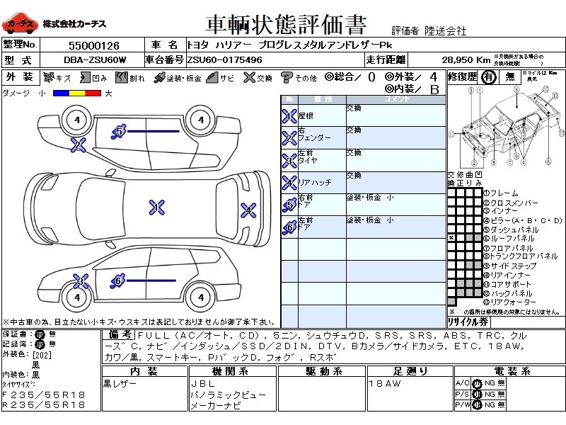 フル装備 / CD / 乗車定員(5人) / 集中ドアロック / エアバッグ / 助手席エアバッグ / ABS / トラクションコントロール / クルーズコントロール / カーナビゲーション(インダッシュ,SSD,2DIN) / 地デジTV / バックカメラ(サイドカメラ) / ETC / アルミホイール(18インチ) / 革シート(黒) / スマートキー / パワーバックドア / フォグランプ / リアスポイラー /