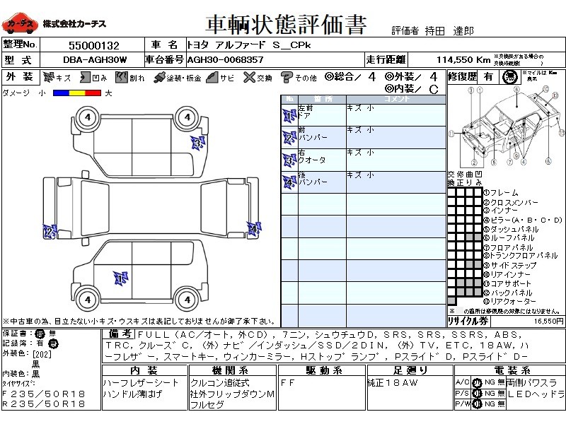 フル装備 / CD(社外) / 乗車定員(7人) / 集中ドアロック / エアバッグ / 助手席エアバッグ / サイドエアバッグ / ABS / トラクションコントロール / クルーズコントロール / カーナビゲーション(社外)(インダッシュ,SSD,2DIN) / テレビ(社外) / 地デジTV(社外) / ETC / アルミホイール(18インチ) / ハーフレザーシート / スマートキー / ウインカーミラー / ハイマウントストップランプ / パワースライドドア / パワーバックドア / フォグランプ / サイドスポイラー / リアスポイラー /