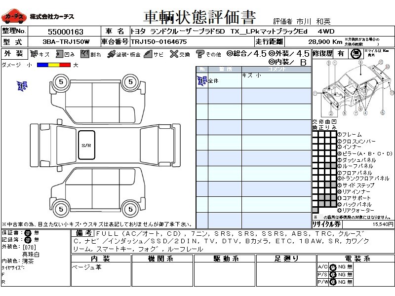 フル装備 / CD / 乗車定員(7人) / エアバッグ / 助手席エアバッグ / サイドエアバッグ / ABS / トラクションコントロール / クルーズコントロール / カーナビゲーション(インダッシュ,SSD,2DIN) / テレビ(アナログ) / 地デジTV / バックカメラ / ETC / アルミホイール(18インチ) / サンルーフ / 革シート(クリーム) / スマートキー / フォグランプ / ルーフレール /