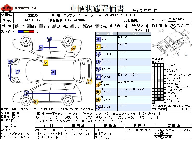 フル装備 / CD / 乗車定員(5人) / 集中ドアロック / エアバッグ / 助手席エアバッグ / ABS / トラクションコントロール / クルーズコントロール / カーナビゲーション(インダッシュ,SSD,2DIN) / 地デジTV / バックカメラ(フロント) / アルミホイール(15インチ) / スマートキー / ウインカーミラー / ハイマウントストップランプ / フォグランプ / サイドスポイラー /