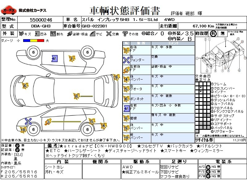 フル装備 / CD / 乗車定員(5人) / エアバッグ / 助手席エアバッグ / ABS / カーナビゲーション(社外)(インダッシュ,SSD,2DIN) / 地デジTV(社外) / ETC / アルミホイール / ハーフレザーシート / スマートキー / ディスチャージ / フォグランプ / サイドスポイラー / リアスポイラー /
