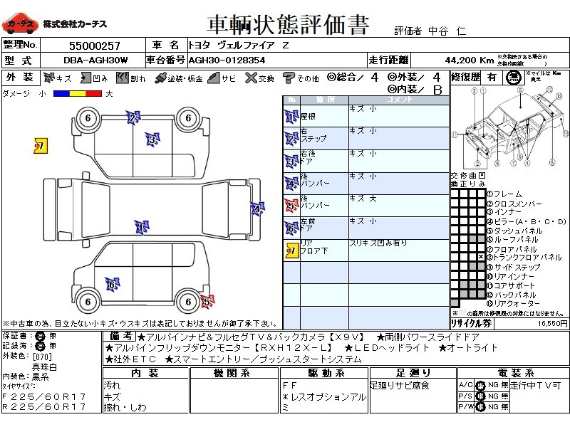フル装備 / CD(社外) / 乗車定員(7人) / 集中ドアロック / エアバッグ / 助手席エアバッグ / サイドエアバッグ / ABS / トラクションコントロール / カーナビゲーション(社外)(インダッシュ,SSD,2DIN) / 地デジTV(社外) / ETC(社外) / アルミホイール(17インチ) / スマートキー / ウインカーミラー / ハイマウントストップランプ / パワースライドドア / フォグランプ / リアスポイラー /