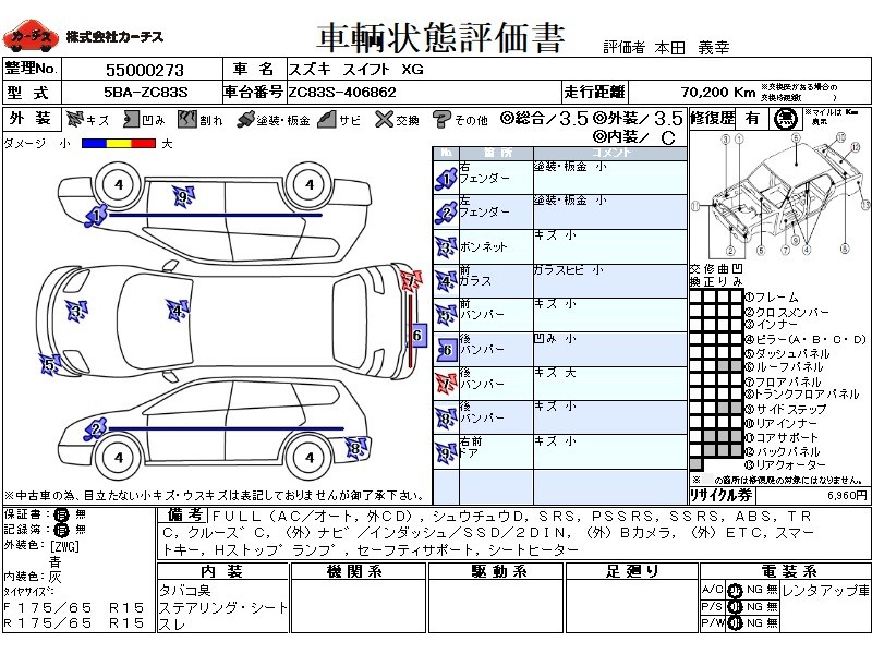 フル装備 / CD(社外) / 集中ドアロック / エアバッグ / 助手席エアバッグ / サイドエアバッグ / ABS / トラクションコントロール / クルーズコントロール / カーナビゲーション(社外)(インダッシュ,SSD,2DIN) / ETC(社外) / スマートキー / ハイマウントストップランプ /