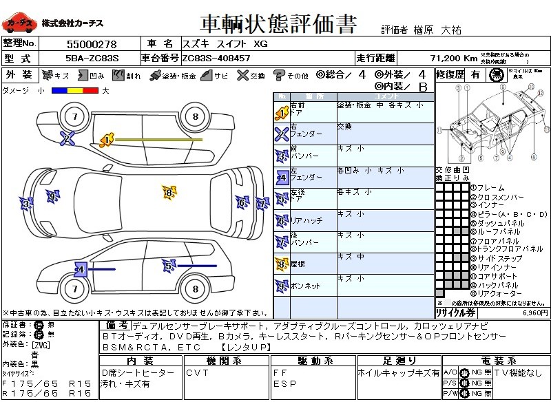 111.4万円 | 2021 (R03)式 | 7.1万km | 青 | 1200cc | AT | FF | 車検整備付 | 修復歴なし | 状態評価書