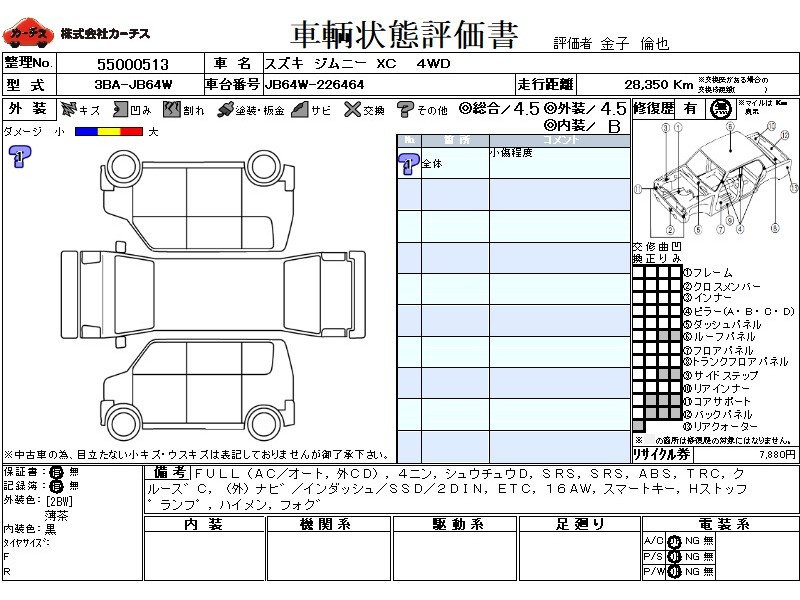 フル装備 / CD(社外) / 乗車定員(4人) / 集中ドアロック / エアバッグ / 助手席エアバッグ / ABS / トラクションコントロール / クルーズコントロール / カーナビゲーション(社外)(インダッシュ,SSD,2DIN) / 地デジTV(社外) / ETC / アルミホイール(16インチ) / スマートキー / ハイマウントストップランプ / 背面タイヤ / フォグランプ / マフラー(社外) / 足回り /