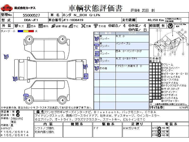 フル装備 / CD / 乗車定員(4人) / エアバッグ / 助手席エアバッグ / サイドエアバッグ / ABS / カーナビゲーション(SSD) / テレビ(アナログ) / 地デジTV / ETC / アルミホイール(社外)(14インチ) / スマートキー / ディスチャージ / ウインカーミラー / ハイマウントストップランプ / パワースライドドア /