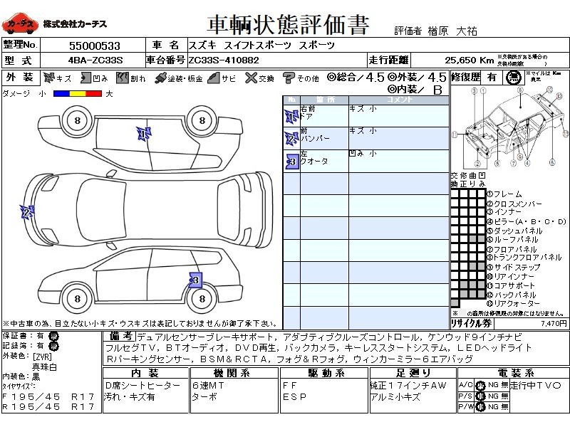 フル装備 / CD(社外) / エアバッグ / 助手席エアバッグ / サイドエアバッグ / ABS / トラクションコントロール / クルーズコントロール / カーナビゲーション(社外)(インダッシュ,2DIN) / 地デジTV(社外) / ETC(社外) / アルミホイール(17インチ) / スマートキー / ウインカーミラー / フォグランプ / サイドスポイラー / リアスポイラー /