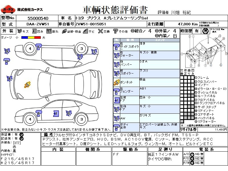フル装備 / CD / 乗車定員(5人) / エアバッグ / 助手席エアバッグ / サイドエアバッグ / ABS / クルーズコントロール / カーナビゲーション(SSD) / テレビ(アナログ) / 地デジTV / バックカメラ(フロント) / ETC / アルミホイール(17インチ) / 革シート(黒) / スマートキー / ウインカーミラー / ハイマウントストップランプ / フォグランプ / フロントスポイラー(社外) / サイドスポイラー(社外) / リアアンダースポイラー(社外) /