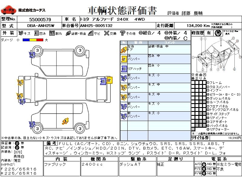 フル装備 / CD / 乗車定員(8人) / 集中ドアロック / エアバッグ / 助手席エアバッグ / サイドエアバッグ / ABS / トラクションコントロール / カーナビゲーション(インダッシュ,HDD,2DIN) / 地デジTV / バックカメラ / ETC / アルミホイール(16インチ) / スマートキー / ディスチャージ / ウインカーミラー / ハイマウントストップランプ / パワースライドドア / フォグランプ / リアスポイラー /