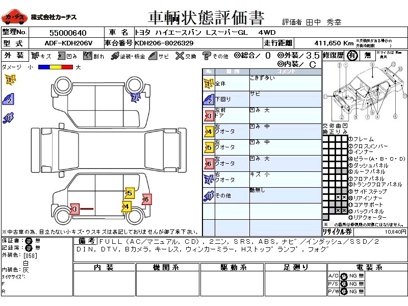 フル装備 / CD / 乗車定員(2人) / エアバッグ / ABS / カーナビゲーション(インダッシュ,SSD,2DIN) / 地デジTV / バックカメラ / ETC(社外) / キーレスエントリー / ウインカーミラー / ハイマウントストップランプ / フォグランプ /