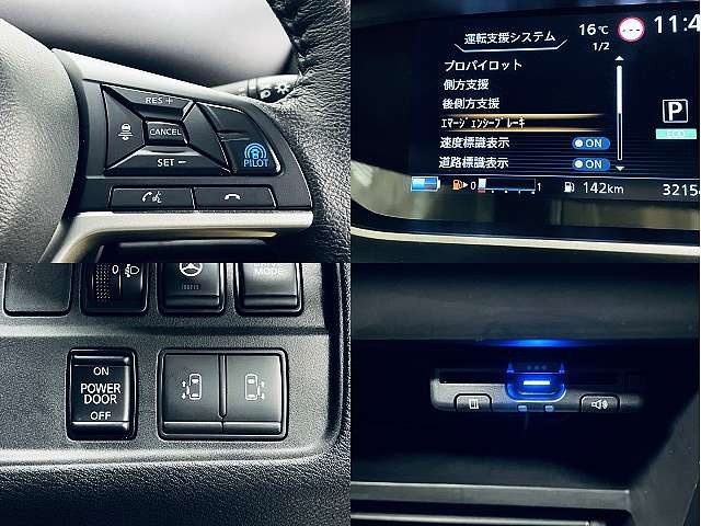 フルセグ付ストラーダ10インチSDナビ!DVD再生可!BT!アラウンドビューM!プロパイロット!全方位運転支援システム!両側パワスラ!社外AW!LEDヘッドランプ!社外ウインカーミラー!フォグ!デュアルバックドア!コンビ防水シート!Sヒーター!革巻ステア!クルコン!インテリルームミラー!ETC