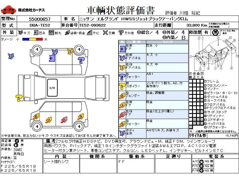 フル装備 / CD / 乗車定員(7人) / エアバッグ / 助手席エアバッグ / サイドエアバッグ / ABS / クルーズコントロール / カーナビゲーション(HDD) / テレビ(アナログ) / 地デジTV / フリップダウンモニタ / バックカメラ(フロント) / ETC / アルミホイール(18インチ) / ダブルサンルーフ / 革シート(茶) / スマートキー / ウインカーミラー / ハイマウントストップランプ / パワースライドドア / パワーバックドア / フォグランプ / フロントスポイラー / サイドスポイラー / リアスポイラー /