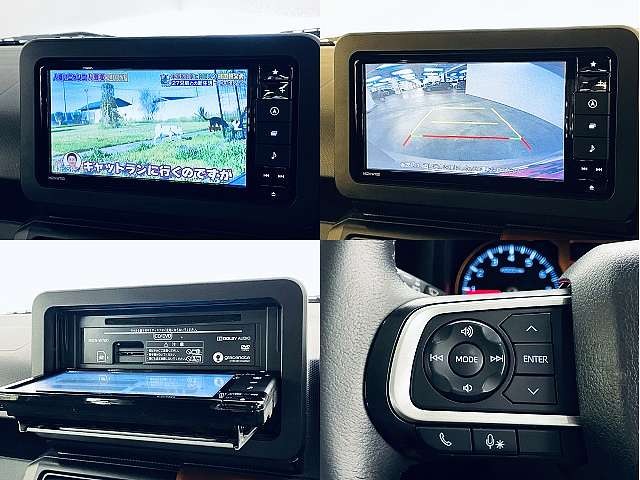 フルセグ付純正SDナビ!DVD再生可!BT!バックカメラ!スマートアシスト!エコアイドル!スカイフィールトップ!純正15インチガンメタリック塗装AW!ルーフレール!Pセンサー!シートヒータ!シートアンダートレイ!革巻ステアリング!Rクルコン!LEDヘッドライト!LEDフォグ!6エアバッグ!ETC!