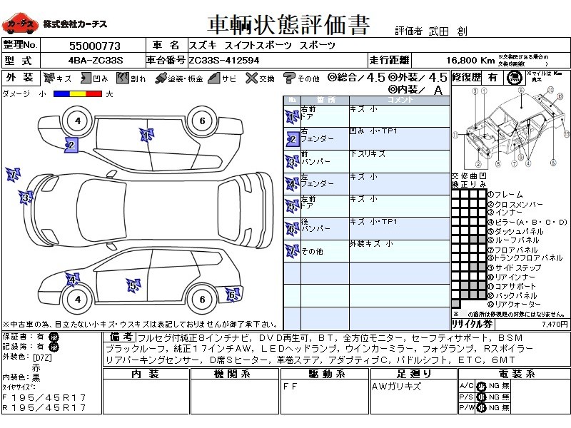 フル装備 / CD / 乗車定員(5人) / エアバッグ / 助手席エアバッグ / サイドエアバッグ / ABS / クルーズコントロール / カーナビゲーション(SSD) / テレビ(アナログ) / 地デジTV / バックカメラ / ETC / アルミホイール(17インチ) / スマートキー / ウインカーミラー / ハイマウントストップランプ / フォグランプ / リアスポイラー /