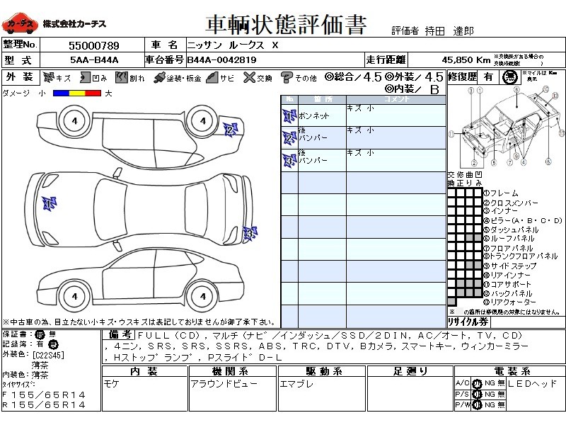フル装備 / CD / マルチ(ナビ) / エアコン(オート) / テレビ(アナログ) / 乗車定員(4人) / エアバッグ / 助手席エアバッグ / サイドエアバッグ / ABS / トラクションコントロール / 地デジTV / バックカメラ / ETC(社外) / スマートキー / ウインカーミラー / ハイマウントストップランプ / パワースライドドア /