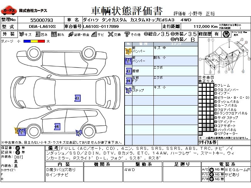 フル装備 / CD / 乗車定員(4人) / エアバッグ / 助手席エアバッグ / サイドエアバッグ / ABS / トラクションコントロール / カーナビゲーション(インダッシュ,SSD,2DIN) / 地デジTV / バックカメラ / ETC / アルミホイール(14インチ) / ハーフレザーシート / スマートキー / ウインカーミラー / パワースライドドア / フォグランプ / サイドスポイラー / リアスポイラー /