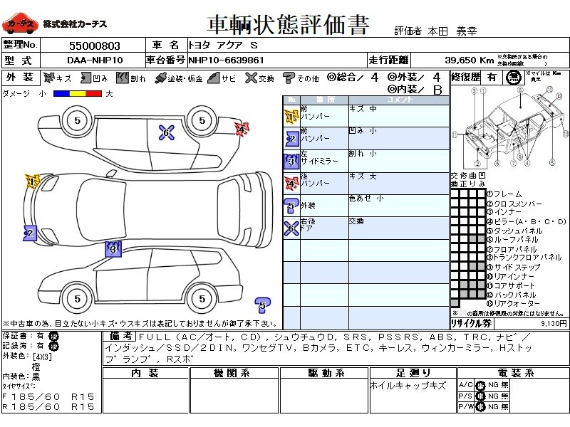 フル装備 / CD / 集中ドアロック / エアバッグ / 助手席エアバッグ / ABS / トラクションコントロール / カーナビゲーション(インダッシュ,SSD,2DIN) / テレビ(アナログ) / バックカメラ / ETC / キーレスエントリー / ウインカーミラー / ハイマウントストップランプ / リアスポイラー /