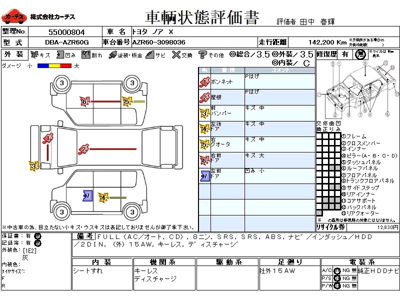 フル装備 / CD / 乗車定員(8人) / エアバッグ / 助手席エアバッグ / ABS / カーナビゲーション(インダッシュ,HDD,2DIN) / アルミホイール(社外)(15インチ) / キーレスエントリー / ディスチャージ /