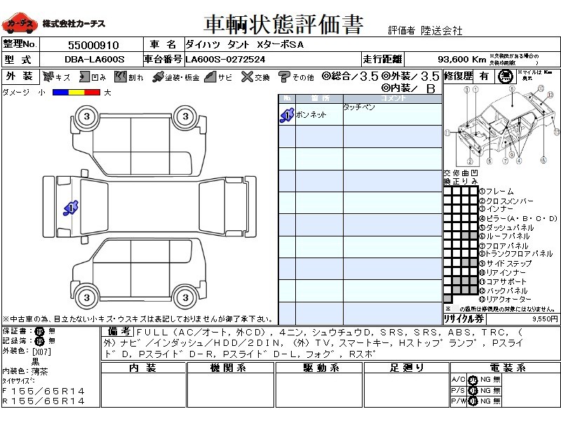 フル装備 / CD(社外) / 乗車定員(4人) / 集中ドアロック / エアバッグ / 助手席エアバッグ / ABS / トラクションコントロール / カーナビゲーション(社外)(インダッシュ,HDD,2DIN) / テレビ(社外) / 地デジTV(社外) / ETC(社外) / スマートキー / ハイマウントストップランプ / パワースライドドア / フォグランプ / リアスポイラー /