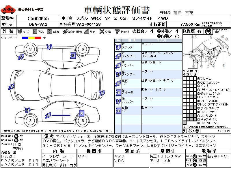 アイサイトVER.3 全車速追従機能付クルーズコントロール 純正OPストラーダSDナビ&DSRC フルセグTV DVD再生 バックカメラ キーレスアクセス LEDヘッドライト パドルシフト SI-DRIVE ビルシュタインダンパー LEDアクセサリーライナー 純正18インチアルミ F席パワーシート 純正エアロパーツ ウィンカーミラー 6エアバッグ