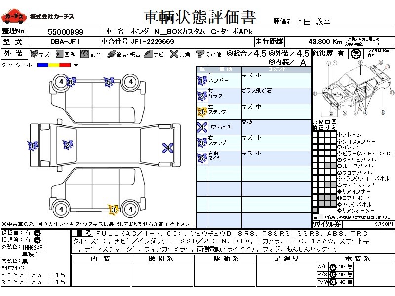 フル装備 / CD / 集中ドアロック / エアバッグ / 助手席エアバッグ / サイドエアバッグ / ABS / トラクションコントロール / クルーズコントロール / カーナビゲーション(インダッシュ,SSD,2DIN) / テレビ(アナログ) / 地デジTV / バックカメラ / ETC / アルミホイール(15インチ) / スマートキー / ディスチャージ / ウインカーミラー / ハイマウントストップランプ / パワースライドドア / フォグランプ / サイドスポイラー / リアスポイラー /
