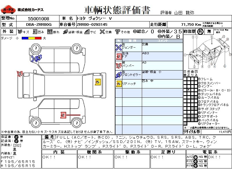 フル装備 / CD(社外) / 乗車定員(7人) / 集中ドアロック / エアバッグ / 助手席エアバッグ / ABS / トラクションコントロール / クルーズコントロール / カーナビゲーション(社外)(インダッシュ,SSD,2DIN) / テレビ(社外) / 地デジTV(社外) / ETC(社外) / アルミホイール(15インチ) / スマートキー / ウインカーミラー / ハイマウントストップランプ / パワースライドドア / フォグランプ /
