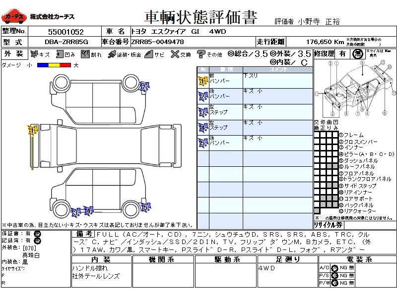 フル装備 / CD / 乗車定員(7人) / 集中ドアロック / エアバッグ / 助手席エアバッグ / ABS / トラクションコントロール / クルーズコントロール / カーナビゲーション(インダッシュ,SSD,2DIN) / テレビ(アナログ) / フリップダウンモニタ / バックカメラ / ETC / アルミホイール(社外)(17インチ) / 革シート(黒) / スマートキー / パワースライドドア / フォグランプ / リアアンダースポイラー /