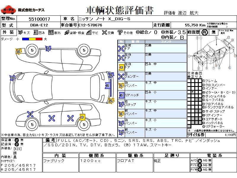 フル装備 / CD / 乗車定員(5人) / エアバッグ / 助手席エアバッグ / ABS / トラクションコントロール / カーナビゲーション(インダッシュ,SSD,2DIN) / テレビ(アナログ) / 地デジTV / バックカメラ / ETC(社外) / アルミホイール(社外)(17インチ) / スマートキー /