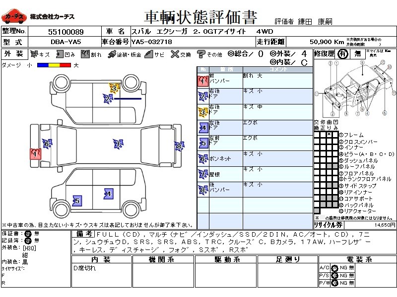 | 法定点検整備 | あり 契約後、納車までに実施 |