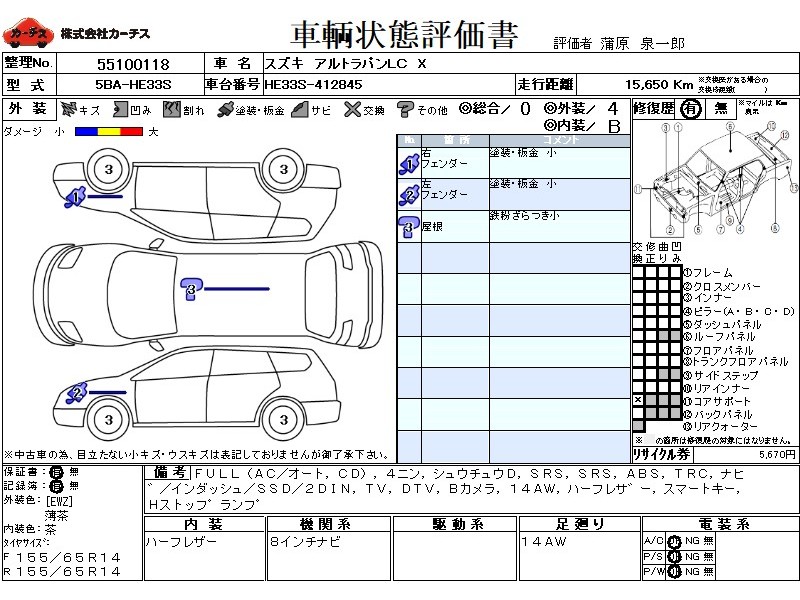 | 外装評価 | 4 |