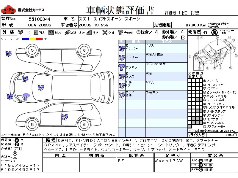 フル装備 / CD(社外) / 乗車定員(5人) / エアバッグ / 助手席エアバッグ / ABS / クルーズコントロール / カーナビゲーション(社外)(SSD) / テレビ(社外) / 地デジTV(社外) / ETC / アルミホイール(社外)(17インチ) / スマートキー / ウインカーミラー / ハイマウントストップランプ / フォグランプ / サイドスポイラー / リアスポイラー(社外) /