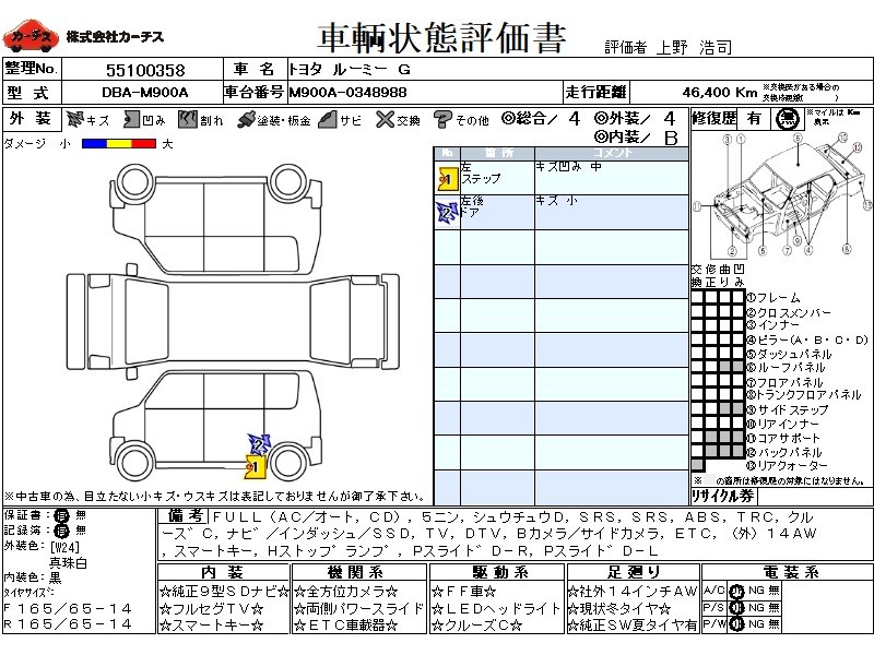 フル装備 / CD / 乗車定員(5人) / 集中ドアロック / エアバッグ / 助手席エアバッグ / ABS / トラクションコントロール / クルーズコントロール / カーナビゲーション(インダッシュ,SSD) / テレビ(アナログ) / 地デジTV / バックカメラ(サイドカメラ) / ETC / アルミホイール(社外)(14インチ) / スマートキー / ハイマウントストップランプ / パワースライドドア /