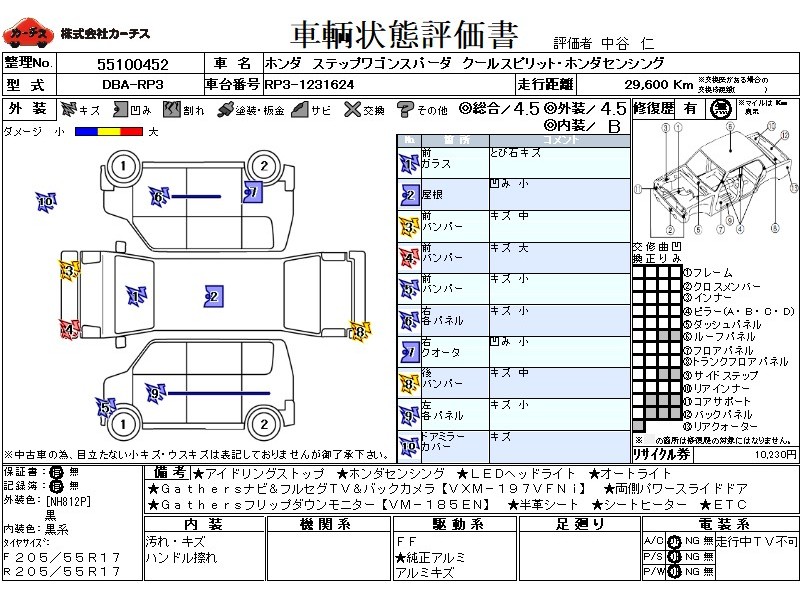 フル装備 / CD / 乗車定員(7人) / 集中ドアロック / エアバッグ / 助手席エアバッグ / サイドエアバッグ / ABS / トラクションコントロール / クルーズコントロール / カーナビゲーション(インダッシュ,SSD,2DIN) / 地デジTV / フリップダウンモニタ / バックカメラ / ETC / アルミホイール(17インチ) / ハーフレザーシート / スマートキー / ウインカーミラー / ハイマウントストップランプ / パワースライドドア / フォグランプ / サイドスポイラー / リアスポイラー /