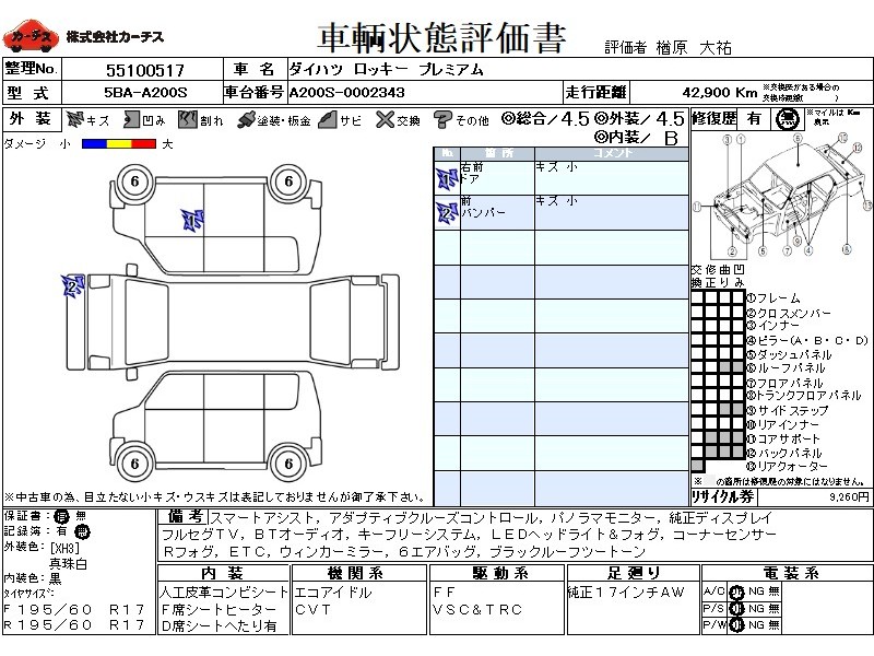 スマートアシスト アダプティブクルーズコントロール パノラマモニター 純正ディスプレイオーディオ&フルセグTV BTオーディオ キーフリーシステム LEDヘッドライト&LEDフォグ 純正17インチアルミ 人工皮革コンビシート F席シートヒーター コーナーセンサー ETC ウィンカーミラー 6エアバッグ エコアイドル 禁煙車