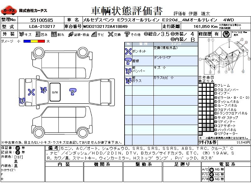乗車定員(5人) / エアコン(オート) / パワーステアリング / パワーウィンドウ / 集中ドアロック / エアバッグ / 助手席エアバッグ / サイドエアバッグ / ABS / トラクションコントロール / クルーズコントロール / カーナビゲーション(インダッシュ,HDD,2DIN) / 地デジTV / バックカメラ(サイドカメラ) / ETC / アルミホイール(社外)(19インチ) / サンルーフ / 革シート(黒) / スマートキー / ウインカーミラー / ハイマウントストップランプ / パワーバックドア / リアスポイラー /