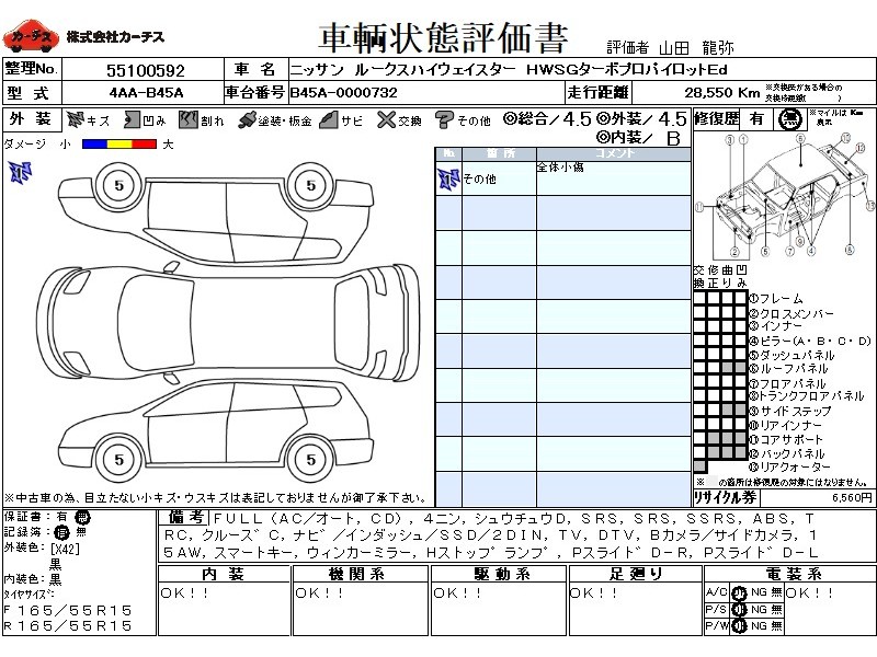 フル装備 / CD / 乗車定員(4人) / 集中ドアロック / エアバッグ / 助手席エアバッグ / サイドエアバッグ / ABS / トラクションコントロール / クルーズコントロール / カーナビゲーション(インダッシュ,SSD,2DIN) / テレビ(アナログ) / 地デジTV / バックカメラ(サイドカメラ) / ETC(社外) / アルミホイール(15インチ) / スマートキー / ウインカーミラー / ハイマウントストップランプ / パワースライドドア / フォグランプ / リアスポイラー /