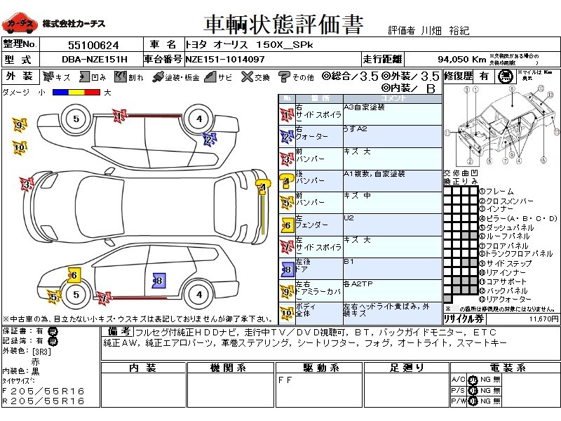 フル装備 / CD / 乗車定員(5人) / エアバッグ / 助手席エアバッグ / ABS / トラクションコントロール / カーナビゲーション(HDD) / テレビ(アナログ) / 地デジTV / バックカメラ / ETC(社外) / アルミホイール(16インチ) / スマートキー / ハイマウントストップランプ / フォグランプ / サイドスポイラー / リアスポイラー /