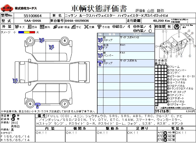 フル装備 / CD / 乗車定員(4人) / 集中ドアロック / エアバッグ / 助手席エアバッグ / ABS / トラクションコントロール / クルーズコントロール / カーナビゲーション(インダッシュ,SSD,2DIN) / テレビ(アナログ) / 地デジTV / ETC / アルミホイール(14インチ) / スマートキー / ウインカーミラー / ハイマウントストップランプ / パワースライドドア / フォグランプ / サイドスポイラー / リアスポイラー / リアアンダースポイラー /