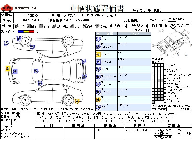 フル装備 / CD / 乗車定員(5人) / エアバッグ / 助手席エアバッグ / サイドエアバッグ / ABS / クルーズコントロール / カーナビゲーション(SSD) / テレビ(アナログ) / 地デジTV / バックカメラ / ETC / アルミホイール(17インチ) / 革シート(黒) / スマートキー / ウインカーミラー / ハイマウントストップランプ / フォグランプ /