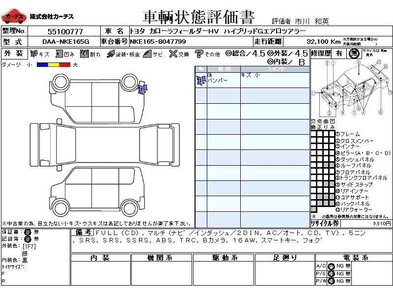 フル装備 / CD / マルチ(ナビ) / エアコン(オート) / テレビ(アナログ) / 乗車定員(5人) / エアバッグ / 助手席エアバッグ / サイドエアバッグ / ABS / トラクションコントロール / バックカメラ / アルミホイール(16インチ) / スマートキー / フォグランプ /