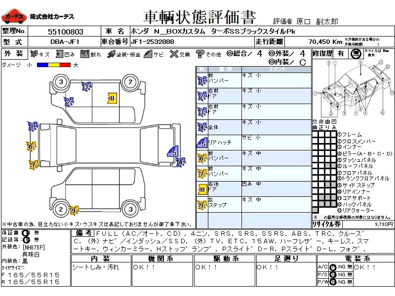 フル装備 / CD / 乗車定員(4人) / エアバッグ / 助手席エアバッグ / サイドエアバッグ / ABS / トラクションコントロール / クルーズコントロール / カーナビゲーション(社外)(インダッシュ,SSD) / テレビ(社外) / 地デジTV(社外) / ETC / アルミホイール(15インチ) / ハーフレザーシート / キーレスエントリー / スマートキー / ディスチャージ / ウインカーミラー / ハイマウントストップランプ / パワースライドドア / フォグランプ / サイドスポイラー / リアスポイラー /